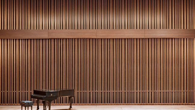 Geometrik is a leading Canadian designer and manufacturer of high-quality wood acoustical ceiling and wall systems. Their broad portfolio of innovative design solutions features a variety of wood species, including Western Hemlock, along with various stains, perforations, shapes, and sizes. They offer nine different wood products across several types of acoustical ceiling and wall systems and a curated palette of 12 standard and custom wood finishes.