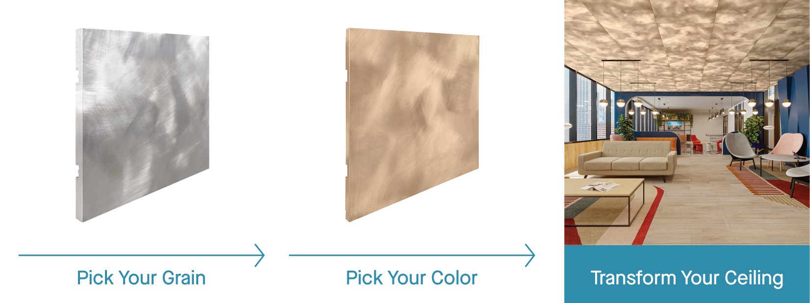 From sleek and linear, to monolithic and shaped designs, METALWORKS Torsion Spring ceiling panels are a versatile solution to transform spaces. Now, these popular ceiling panels are available with Móz Classic Metal Collection Finishes to create a one-of-a-kind visual and offer even more design flexibility.