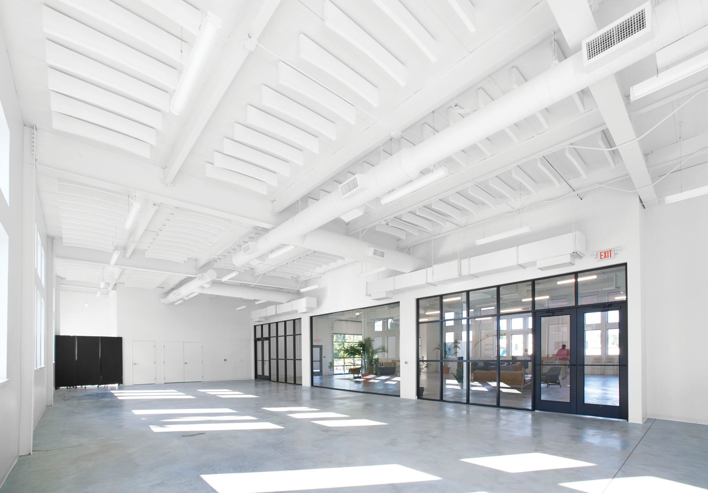 To help solve the problem in the co-working space, Formations acoustical clouds was installed