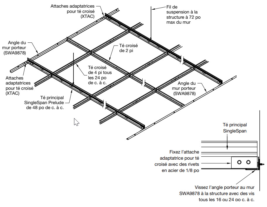 Réduisez ou éliminez le cadrage ou les fils de suspension à la structure dans le faux plafond – 2/3 de matériaux en moins.